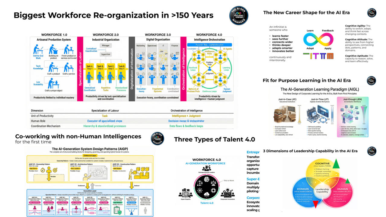 Managers who relied on experience, functional expertise, and incremental improvement are finding that these advantages being replicated by AI. Their roles are being rapidly eroded, redefined, or absorbed by AI-supported workflows.Today's leadership and talent development programs are not designed for this paradigm shift from Digitally-Enabled Workforce to AI-Generation Workforce and are thus, not fit-for-purpose.The question for L&D is: How can we develop managers who can rise above AI, not just play catch up to it?